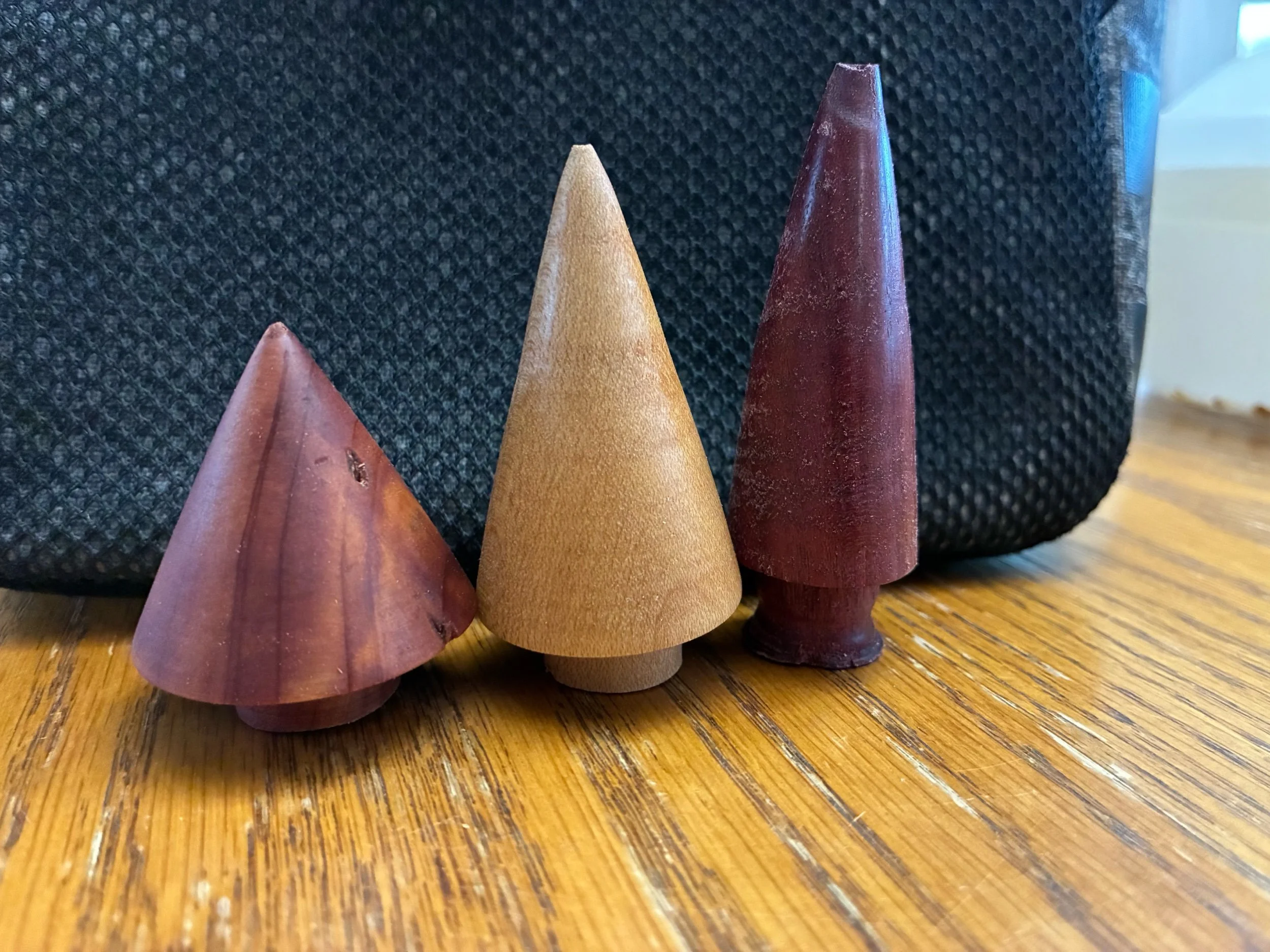 Shop › Christmas decorations Image 1 of 1 Christmas decorations $15.00 These are 3 little Christmas trees I made for decorations. They are made of red cedar, maple, and Purple Heart. Add To Cart Added! These are 3 little Christmas trees I made for decorations. They are made of red cedar, maple, and Purple Heart.